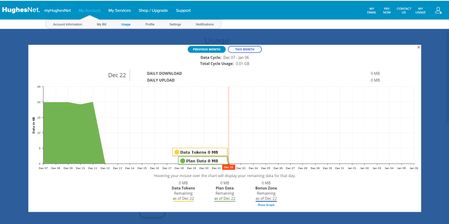 If you're in your first twenty days of service you're in what's known as the "Relaxed Bandwidth Period". This means that, during these twenty days, HughesNet is continually refilling your data. HughesNet does this as a courtesy in order to allow new subscribers to update/upgrade their devices to current without it affecting their normal monthly data allotment, as these activities can use a lot of data, especially if there are a lot of devices and they haven't been updated in a while. After this initial twenty day period the continual data refills will stop and your data usage will be depleted from your monthly allotment in the normal fashion.