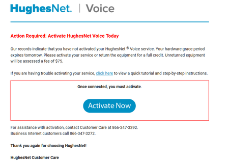 Thanks for posting. I pulled up your account and I can also confirm that your VOIP service is active in our system, yet those e-mail have gone out. Let me check with our VOIP folks to see what's going on with that; I don't see why those e-mails should be sending.