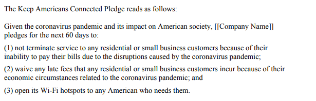HughesNet has announced broadband connectivity relief during the coronavirus pandemic. However, HughesNet did not mention it is a participant of Keep Americans Connected Pledge. Has HughesNet taken the pledge?