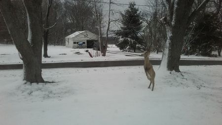 We just had about 5 deer in our back yard, didn't get a pic though. My wife saw them when she was out calling our cat who went missing, I think it's a goner. She was about 15 and born feral so she was an outside cat.
