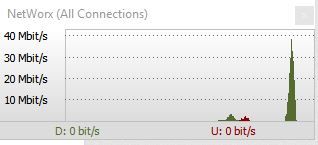 I just tried that speedof.me. It was WAY off, as verified by networx. I tried it twice before starting networx, and the two tests were very similar. I think 3.6Mbps down and 3.9Mbps down, if I remember correctly. The uploads were 1.8Mbps (I think), 1.9Mbps. I didn't try the upload with testmy.net until just now, so it's not on the networx graph, but it was 2.8Mbps.