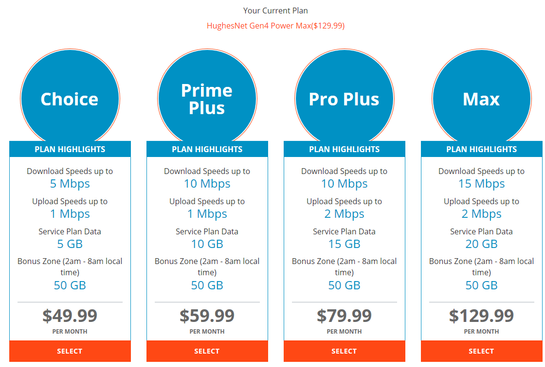 Now, regarding the upgrade to Gen5. The 20/50 Gen5 plan is $69.99. You can see the prices for all Gen5 plans on the hughesnet.com site. Just input your address and you'll see the plans and prices available to you. It's the same plan I have. Because you are a current HughesNet customer I don't know that you can get the deals shown on the page, but the $69.99 price for the 20/50 Gen5 plan is the regular price. You also don't see any upgrade info for Gen5 when you sign in as it's defaulting to giving you upgrade options for the service you presently have, which is Gen4.