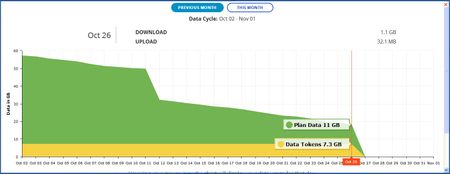 You have the 50GB plan, so your average daily allowance (31 days for you in this cycle, too) is 1613MB. So, if you have six days left in your cycle, by the average, you should have 9678MB. If what you have left is more than 9678MB you're good. If what you have left is less than 9678MB, you'd basically be over what you should have used by now. Judging by your top picture, it looks like you have around 11GB left, or maybe a little less by now. That's about 1.3GB of wiggle room, so you're okay. Again, going by the allowable daily average, you should have about 9678MB left, and you have around 11,000MB, so you're still okay.