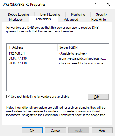I don't know why you cannot fix your modem that I'm leasing from you (HughesNet) and I had to use my skill to fix it on my side. It is now showing the results for Server FQDN. See picture for 192.168.0.1. Hint: Add a name including the address to that DNS server locally.