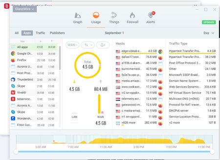 Regardless, It's over now. The drain lasted two days and stopped on its own with no intervention from me. As it turns out, it was done when I found it. No tabs in Chrome have been opened or closed before, during or after. Here's a screenshot of Glasswire the day before it started. Please note the Chrome section showing typical low usage. Another screenshot from today. The offending IP is nowhere to be found in the Glasswire data for either day. By the way, I have Glasswire installed and always open on all four computers so I have records of what goes on when I want to know. I look at three of them every day watching the size of the Bitdefender manual updates done every morning over wifi. These sometimes log highly abnormal sizes compared to the ethernet updates done on my main computer. My bad for not checking anything on my main connected computer while this was going on. Now I want to know why.