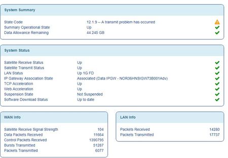 Thanks for posting, glad to hear your system is still working in spite of things. Your diagnostics do show your dish needs a re-alignment, do you want me to dispatch a tech to your site? If so, let me know when works best for you.