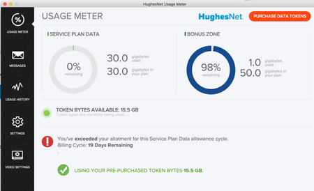 I ran out of data and I still have a red circle, but it's not showing how much of the data tokens I have used and I have HAD to connect to my server for my website this morning and have been connecte...